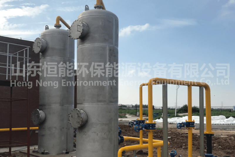 沼氣中含有大量的粉塵、污泥、水分、雜質及毒害性氣體(如HCl,H2S,NH3),為達到設備利用要求或環(huán)保排放標準,需要對原料氣中的氣體進行預處理,如增壓、脫硫、脫水、除塵等。